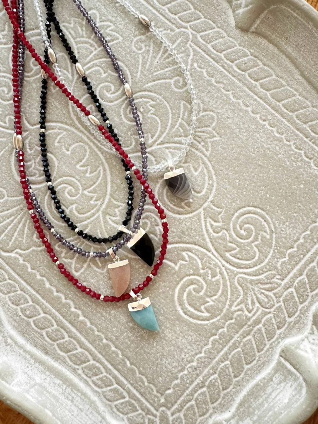 Material collar: cuentas de cristales checos y metal, extensión de acero quirúrgico