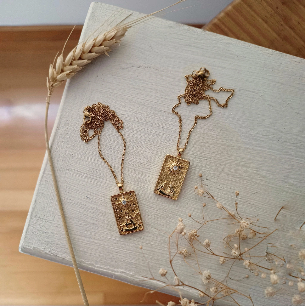 Dije carta de tarot con detalle en la parte trasera y circón engarzado